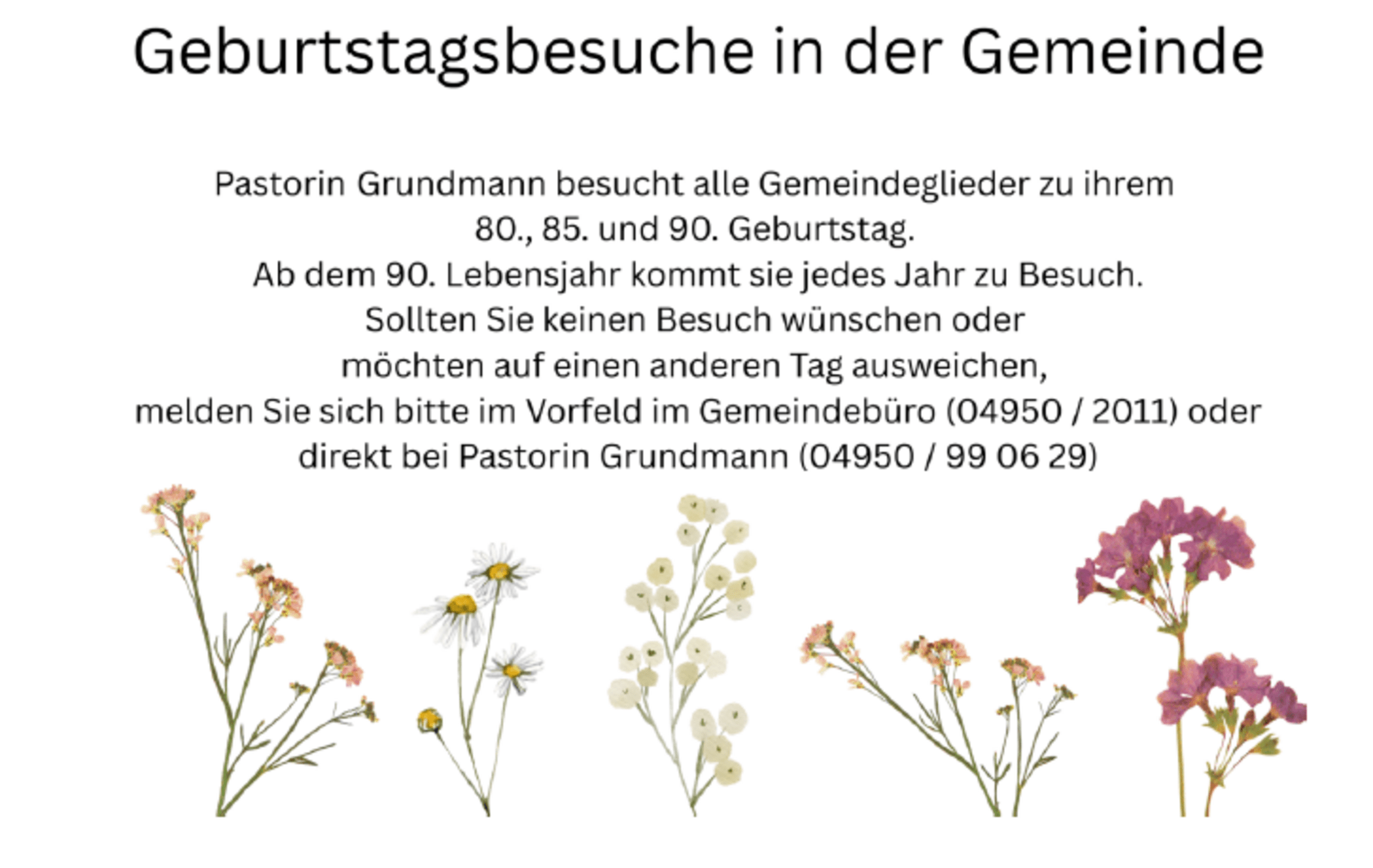 Es gibt in regelmäßigen Abständen Sonntagsgottesdienste mit der Gelegenheit für Taufen. Auch Trauungen und andere Amtshandlungen wie etwa Beerdigungen übernimmt Pastorin Dr. Grundmann. Mann möge sich dazu bei ihr melden.